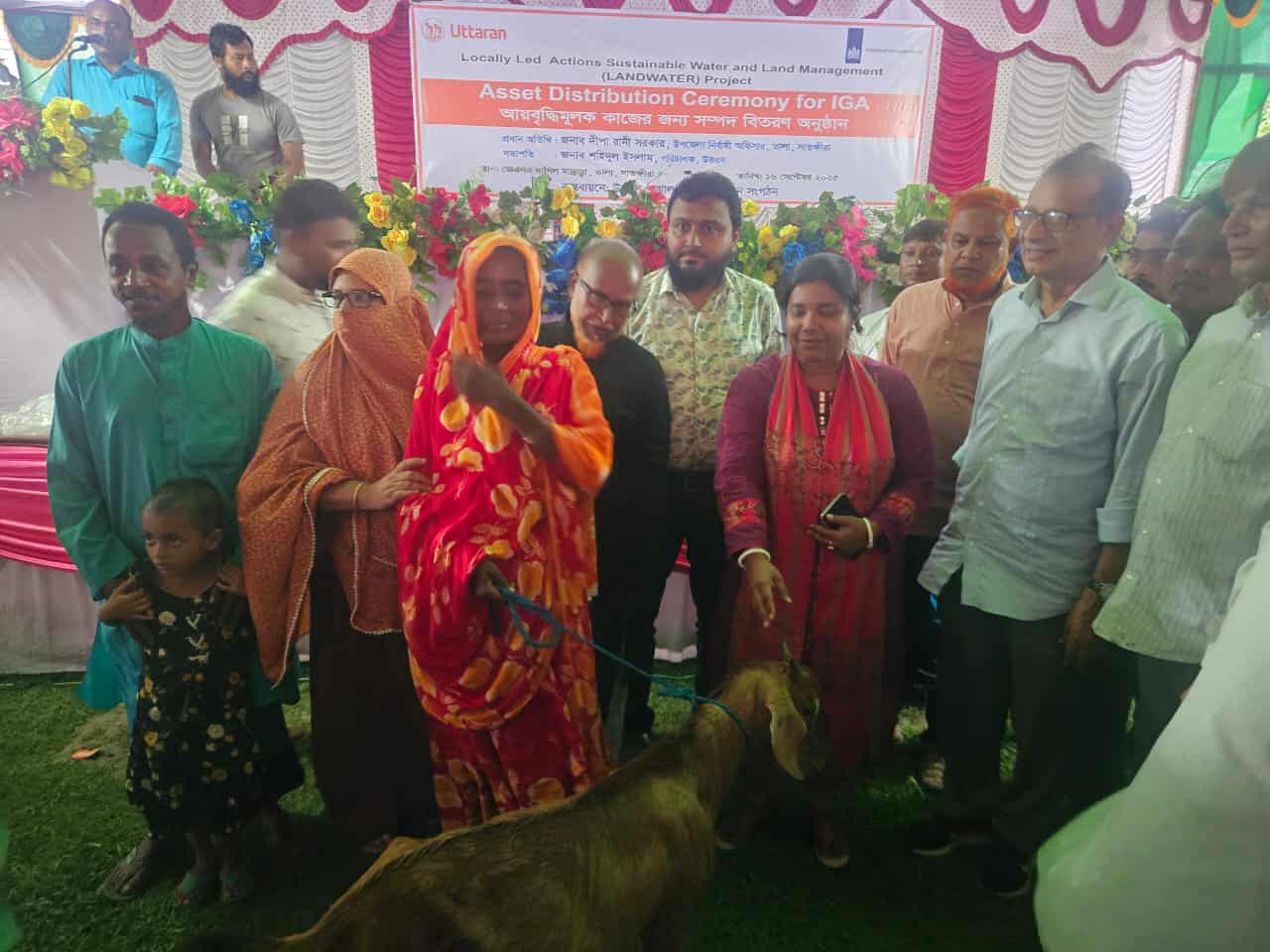 সাতক্ষীরার তালায় বেসরকারী সংস্থা উত্তরণের ল্যান্ডওয়াটার প্রকল্পের পক্ষ থেকে ল্যান্ডস্কেপের কমিউনিটি পর্যায়ে ছাগল, হাঁস-মুরগী ও সেলাই মেশিন এবং মাছ ও মুদি ব্যবসার জন্য বিভিন্ন উপকরণ বিতরণ করা হয়।