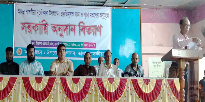 আসন্ন শারদীয় দুর্গাপূজা উপলক্ষে সাতক্ষীরার তালা উপজেলায় প্রস্তুতিমূলক সভা ও পূজা মণ্ডপের অনুকূলে সরকারি অনুদান বিতরণ করা হয়েছে। উপজেলায় মোট ১৯৬টি পূজা মণ্ডপে প্রতিটি মণ্ডপকে ৫০০ কেজি করে চাল বরাদ্দ দেওয়া হয়েছে।