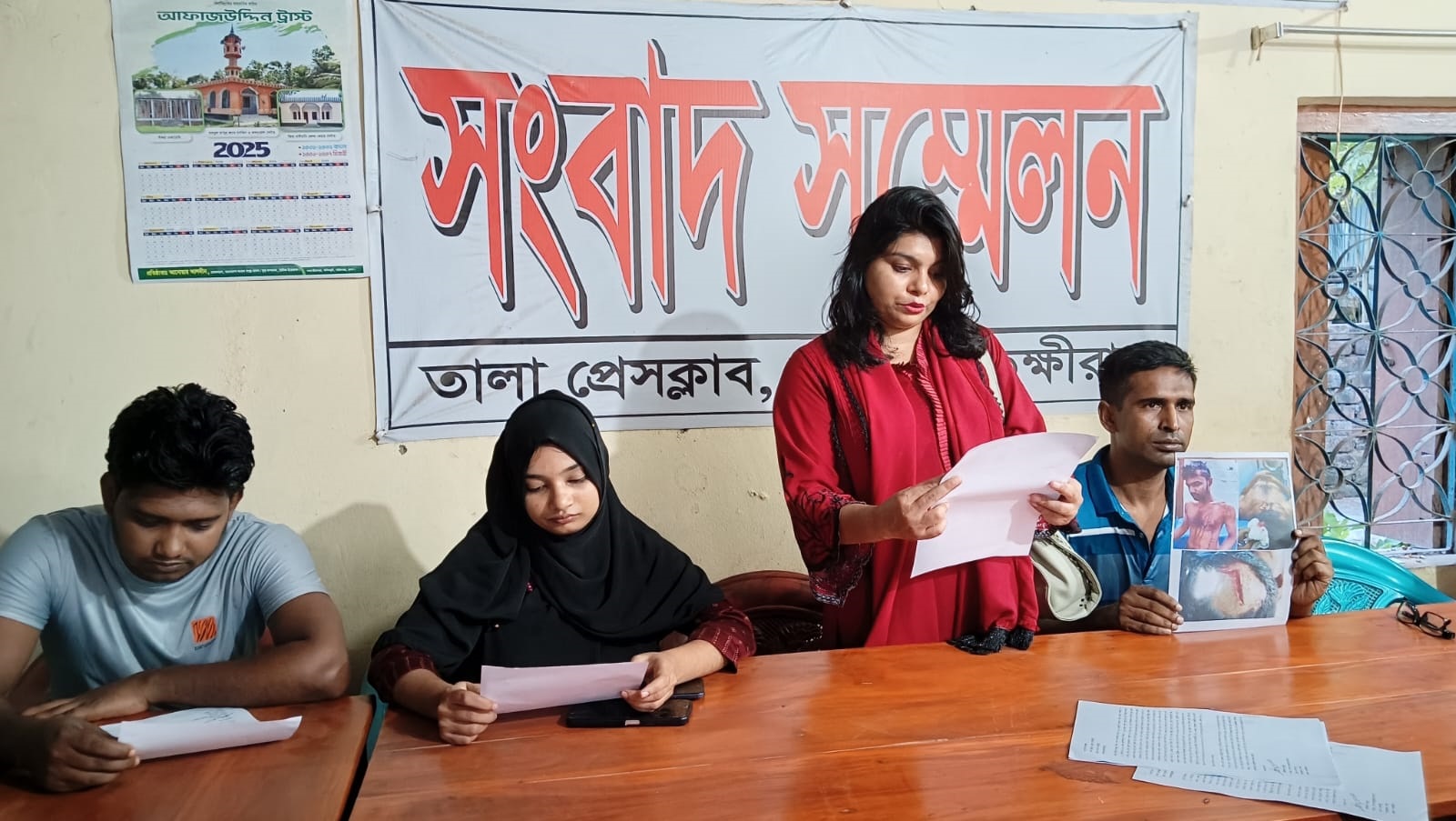 সাতক্ষীরার তালা উপজেলার মদনপুর গ্রামে অবৈধভাবে বালু বিক্রয়কে কেন্দ্র করে সংঘর্ষে একই পরিবারের দুইজনসহ চারজন আহত হয়েছেন। এ ঘটনায় আহতদের পক্ষ থেকে সংবাদ সম্মেলন করে হামলাকারীদের দৃষ্টান্তমূলক শাস্তি দাবি করা হয়েছে। রোববার (১৯ অক্টোবর) বিকালে তালা প্রেসক্লাবে অনুষ্ঠিত সংবাদ সম্মেলনে ভুক্তভোগী পরিবারের সদস্য ঈশিকা আরজু লিখিত বক্তব্য পাঠ করেন।