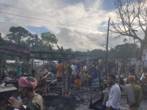 তালায় হাজরাকাটি বাজারে ভয়াবহ অগ্নিকাণ্ডে ৮ দোকান পুড়ে ছাই