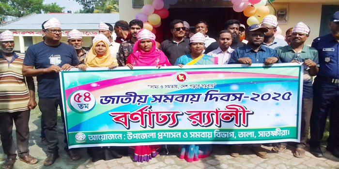 “সাম্য ও সমতায়, দেশ গড়বে সমবায়” এ প্রতিপাদ্যকে সামনে রেখে সাতক্ষীরার তালায় যথাযোগ্য মর্যাদায় পালিত হয়েছে ৫৪তম জাতীয় সমবায় দিবস ২০২৫। শনিবার (১ নভেম্বর) সকালে উপজেলা প্রশাসন ও সমবায় বিভাগের উদ্যোগে একটি বর্ণাঢ্য র্যালি উপজেলা চত্বর থেকে শুরু হয়ে উপশহরের বিভিন্ন গুরুত্বপূর্ণ সড়ক প্রদক্ষিণ করে শিল্পকলা একাডেমি চত্বরে গিয়ে শেষ হয়। পরে সেখানে আলোচনা সভা অনুষ্ঠিত হয়।