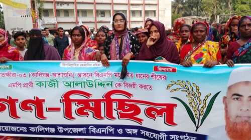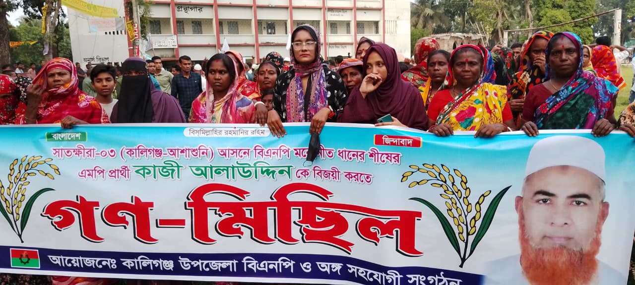 বৃহস্পতিবার বিকালে কালীগঞ্জ কলেজ মোড় থেকে মিছিলটি বের হয়ে গুরুত্বপূর্ণ সড়ক প্রদক্ষিণ করে শেষ হয়।