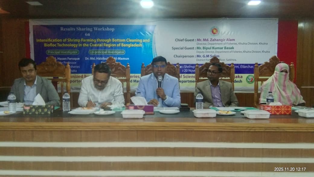 বক্তারা বলেন, বৈশ্বিক বাজারে গুণগত মানসম্পন্ন চিংড়ির চাহিদা এখনো অত্যন্ত বেশি। তাই নিবিড় পদ্ধতির আধুনিক চাষ ব্যবস্থাকে মাঠে বিস্তৃত করতে পারলে সাতক্ষীরা জেলার অর্থনীতি আরও গতিশীল হবে। পাশাপাশি জমির সর্বোচ্চ ব্যবহার, রোগ নিয়ন্ত্রণ, উৎপাদন বৃদ্ধি এবং পরিবেশসম্মত চাষ পদ্ধতি অনুসরণের মাধ্যমে উপকূলীয় অঞ্চলগুলোতে টেকসই চিংড়ি খাত গড়ে তোলা সম্ভব হবে।