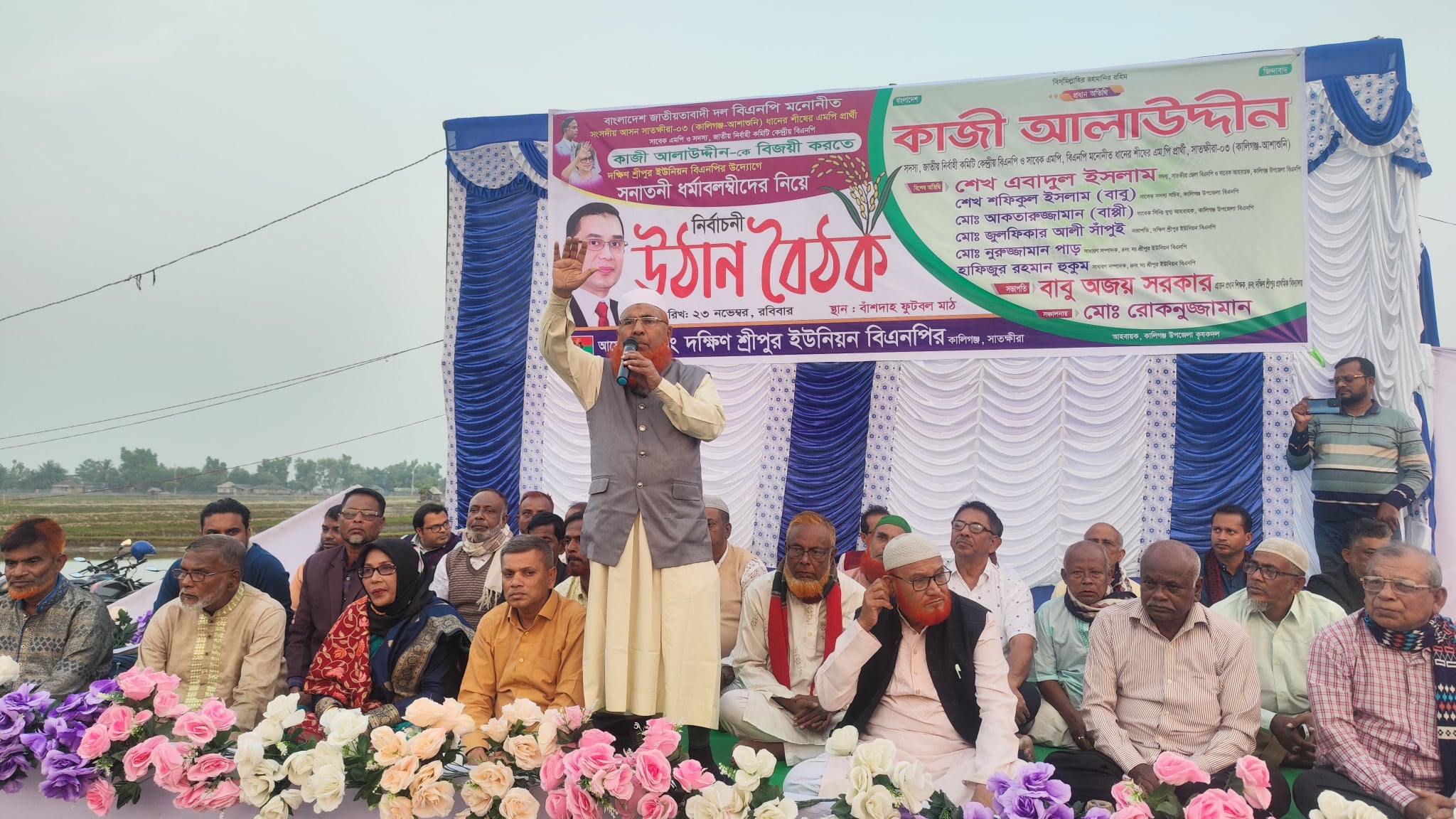 সাতক্ষীরার কালিগঞ্জে সনাতনী ধর্মাবলম্বীদের নিয়ে ধানের শীষের প্রার্থী কাজী আলাউদ্দিনের নির্বাচনী উঠান বৈঠক অনুষ্ঠিত হয়েছে। শ্রীপুর ইউনিয়ন বিএনপির আয়োজনে সোমবার বিকাল সাড়ে ৩টায় সাতক্ষীরার কালিগঞ্জ উপজেলার দক্ষিণ শ্রীপুর ইউনিয়নের বাঁশদাহ ফুটবল মাঠে সনাতনী ধর্মাবলম্বীদের সাথে ধানের শীষের উক্ত নির্বাচনী উঠান বৈঠক অনুষ্ঠিত হয়।
