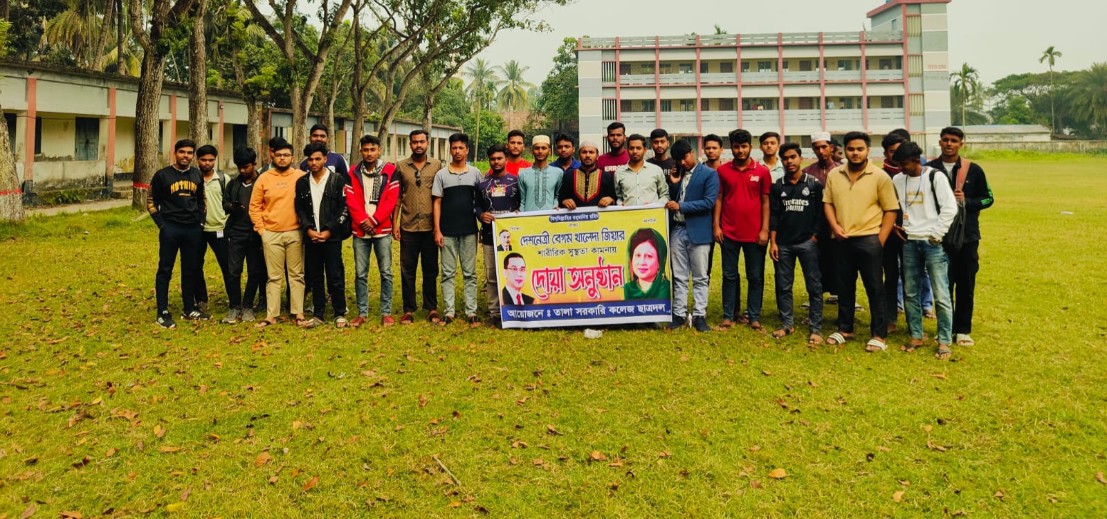 সাবেক প্রধানমন্ত্রী বেগম খালেদা জিয়ার দ্রুত সুস্থতা কামনায় তালা সরকারি কলেজ ছাত্রদলের উদ্যোগে বুধবার (৩ ডিসেম্বর) সকালে দোয়া মাহফিল অনুষ্ঠিত হয়।