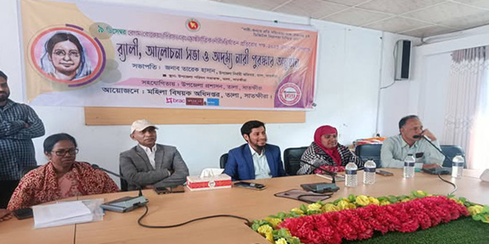 “নারী-কন্যার প্রতি সহিংসতা বন্ধে ঐক্যবদ্ধ হই, ডিজিটাল নিরাপত্তা নিশ্চিত করি” এই প্রতিপাদ্যে সামনে রেখে সাতক্ষীরার তালায় বেগম রোকেয়া দিবস এবং আন্তর্জাতিক নারী নির্যাতন প্রতিরোধ পক্ষ-২০২৫ উদযাপন উপলক্ষ্যে র‌্যালি,আলোচনা সভা ও অদম্য নারী পুরষ্কার প্রদান করা হয়।