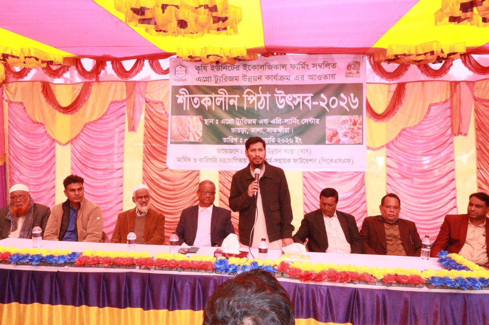 শনিবার (৩ জানুয়ারি) সকাল ১১টায় তালা উপজেলার এগ্রোট্যুরিজম অ্যান্ড এগ্রি-লার্নিং সেন্টারে কৃষি ইউনিটের ইকোলজিকাল ফার্মিং সমন্বিত এগ্রোট্যুরিজম উন্নয়ন কার্যক্রমের আওতায় এ অনুষ্ঠানের আয়োজন করা হয়। এতে সহযোগিতা করে পল্লী কর্ম-সহায়ক ফাউন্ডেশন (পিকেএসএফ)। সাতক্ষীরা উন্নয়ন সংস্থা (সাস)-এর নির্বাহী পরিচালক শেখ ইমান আলীর সভাপতিত্বে এবং স্মার্ট প্রকল্পের সমন্বয়কারী বি এম হাবিবুর রহমানের সঞ্চালনায় অনুষ্ঠানে প্রধান অতিথি হিসেবে বক্তব্য রাখেন তালা উপজেলা নির্বাহী কর্মকর্তা তারেক হাসান। বিশেষ অতিথি হিসেবে বক্তব্য রাখেন উপজেলা সিনিয়র মৎস্য কর্মকর্তা, উন্নয়ন প্রচেষ্টার পরিচালক মোঃ ইয়াকুব আলী এবং রুপালি প্রকল্পের পরিচালক মোঃ শফিকুল ইসলাম।