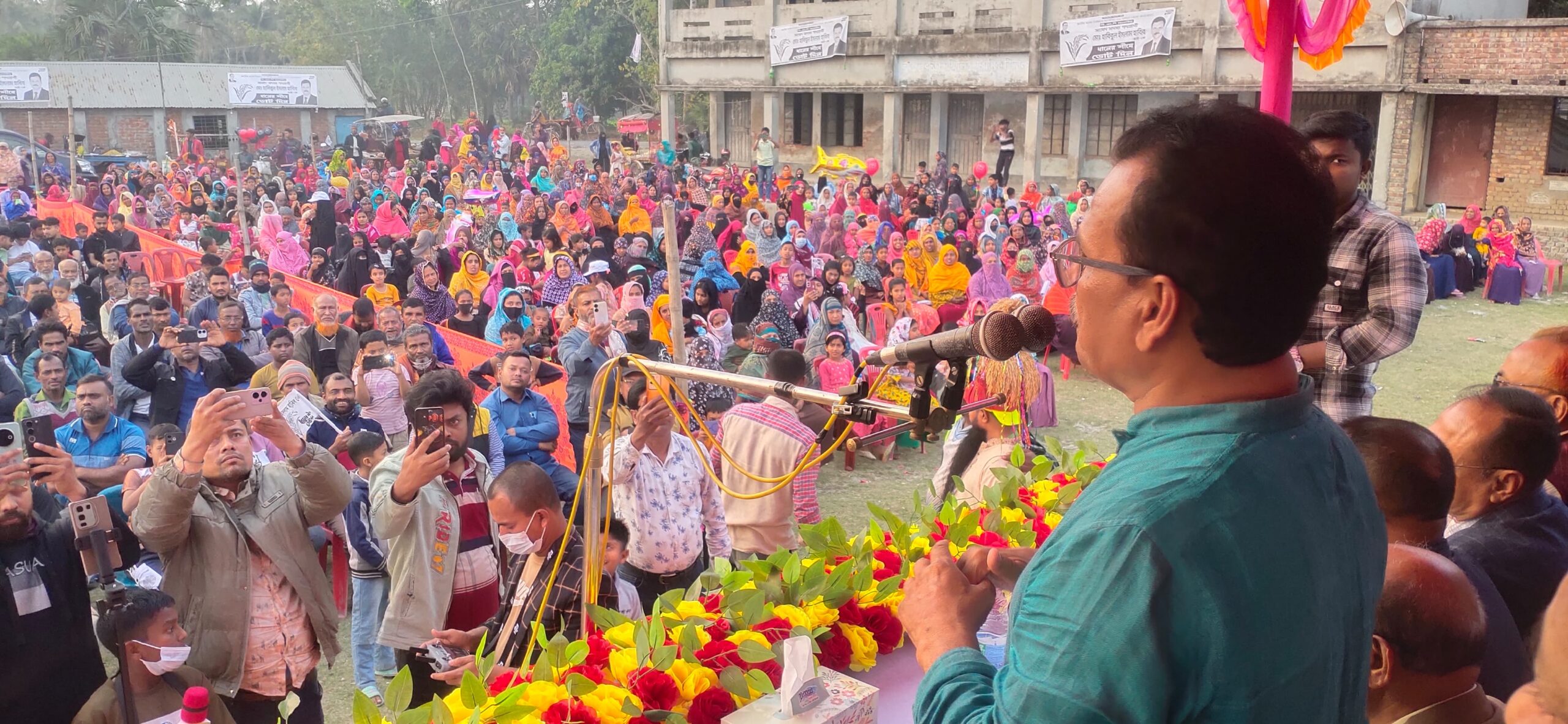 এ সময় তিনি বলেন, আমি নির্বাচিত হতে পারলে, শহীদ জিয়াউর রহমানের মতন, এই নাঙ্গলঝাড়াই খাল খননের মাধ্যমে অধিক কৃষি উৎপাদনের ব্যবস্থা করব। এবং এই সম্মিলিত মাধ্যমিক বিদ্যালয়ের বিল্ডিং এর নির্মাণের ব্যবস্থা করব। রাস্তাঘাট মসজিদ মন্দিরসহ অসম্পূর্ণ উন্নয়নকে সম্পন্ন করব।